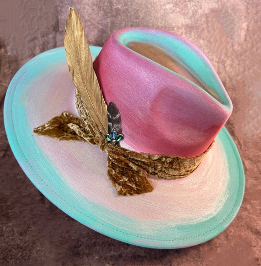 Vegan Suede Hat, Hat with Rosegold Accessory, Hat for Burning, Wide Brim Hat, Rancher Hat, Hat for customization