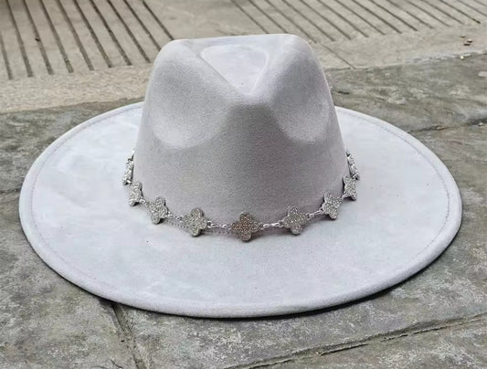 Diamond Embellishment Vegan Suede Cowboy Hat - Adjustable Fedora Style, Unisex, 56-58cm, Ethical & Cruelty-Free, Adjustable Straps Inside