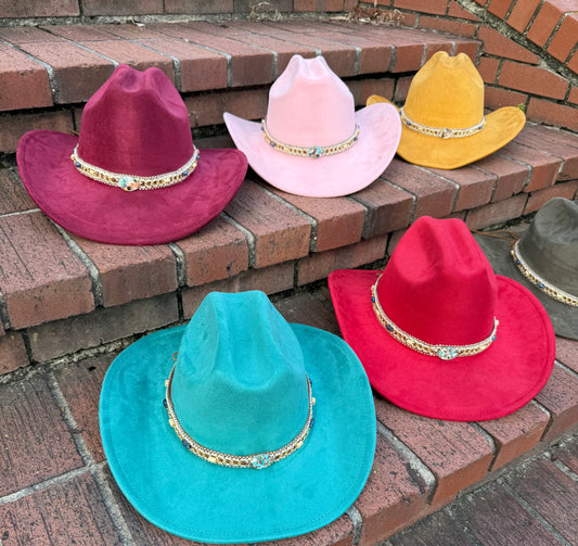 Vegan Suede Cowboy Hat, Hat with Rosegold Accessory, Hat for Burning, Cowboy Hat, Rancher Hat, Hat for customization