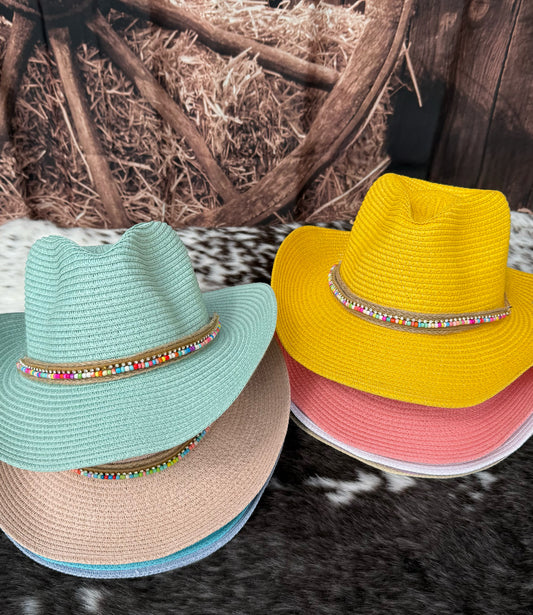 Premium Suede Cowboy Hat - Mustard Design with Decorative Beads and Silver Accents