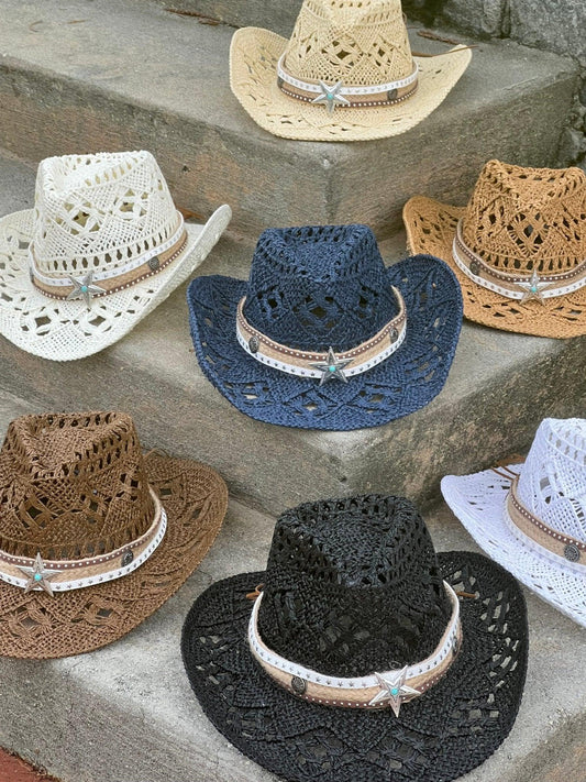 Lux Cowboy Straw Hat - , Adjustable Straps, 56-58cm Size, 7 Unisex