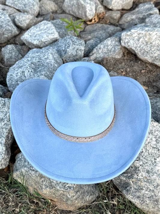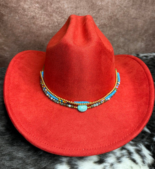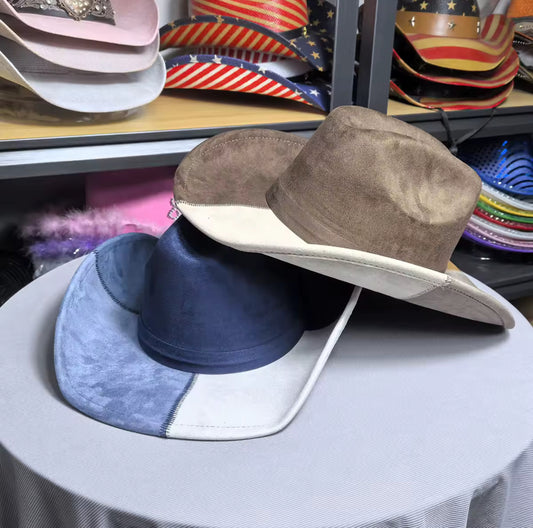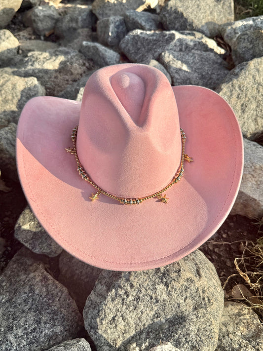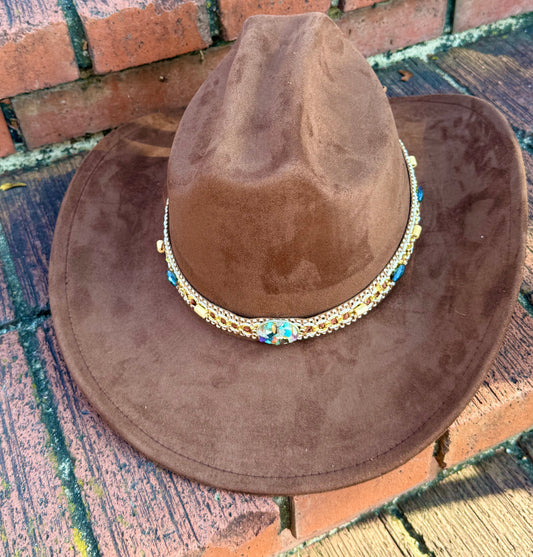 Vegan Suede Cowboy Hat, Hat with Rosegold Accessory, Hat for customization