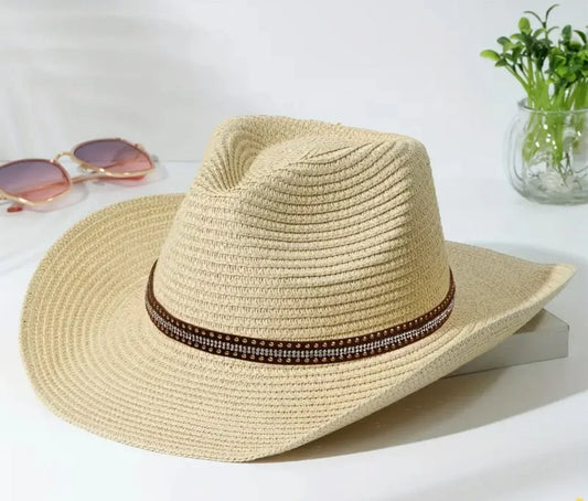 Beyond Ruff Straw Cowboy Hat - Adjustable ,Unisex ,Natural Grass Seagrass Hat with Breathable Band & 10cm Brim for Outdoor Adventures