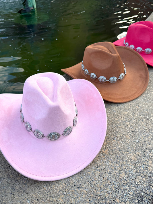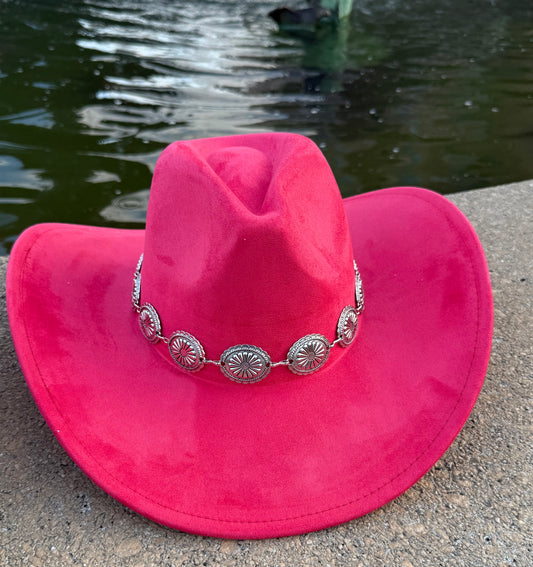Premium Suede Cowboy Hat - Pink Design with Decorative chain and Silver Accents