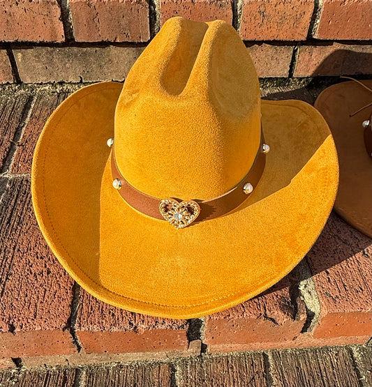 Premium Suede Cowboy Hat - Gold Design with Decorative Colorful Accents