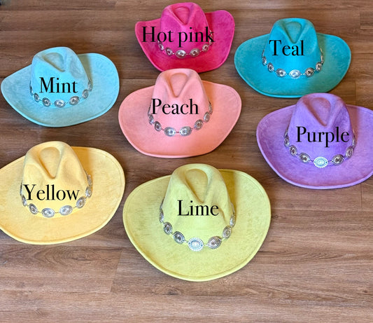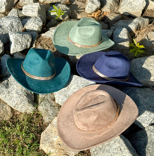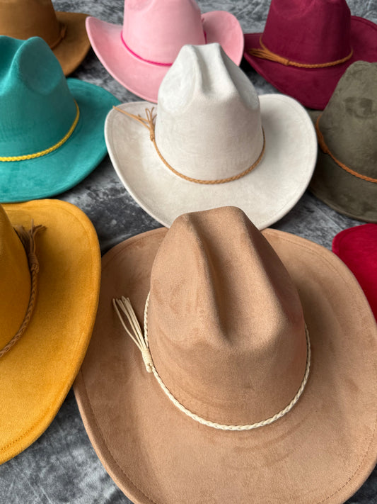 Vegan Suede Cowboy Hat, Hat with Rosegold Accessory, Hat for Burning, Cowboy Hat, Rancher Hat, Hat for customization