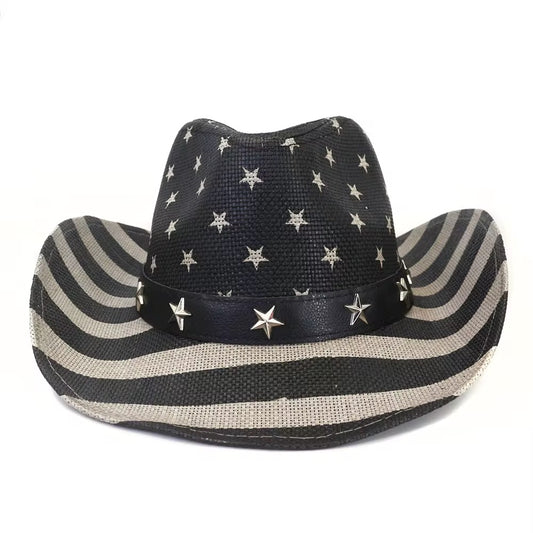 USA Flag Theme Sun Hat,Western Cowboy Hat, Durable Straw Material