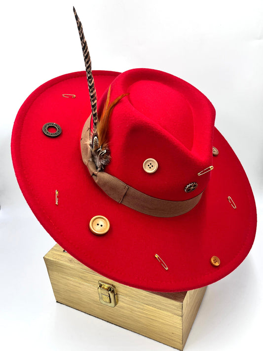 Luxury Bow Tie Fedora Hat -Button-me-up- Red