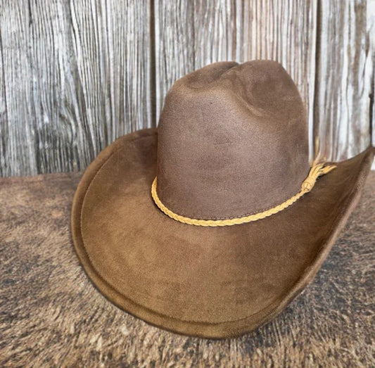 Vegan Suede Cowboy Hat, Hat with Rosegold Accessory, Hat for customization