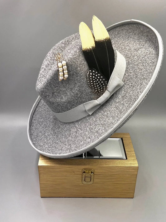 Bow Tie Fedora Hat -Pencil brim GrayGold