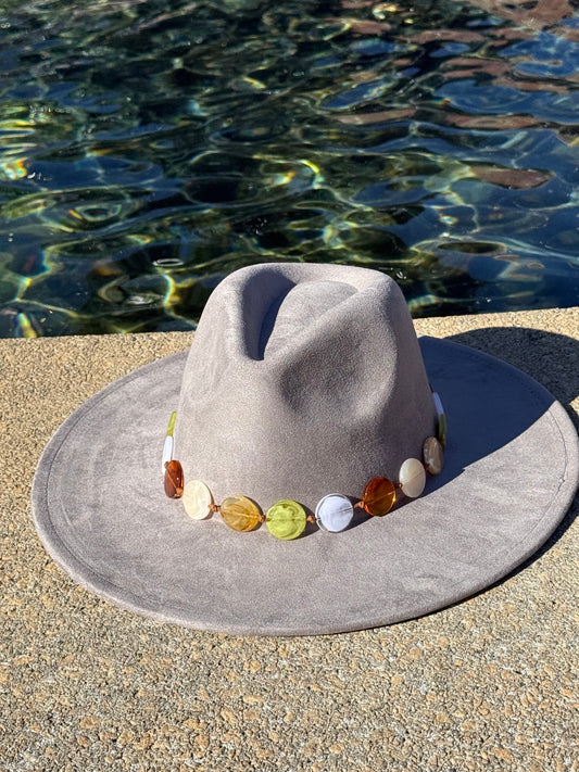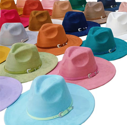 Wide Suede Fedora -With Button Accessory