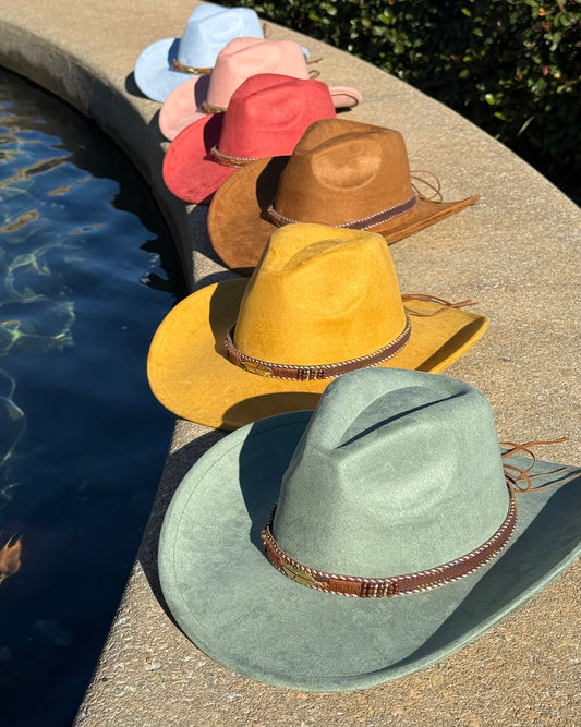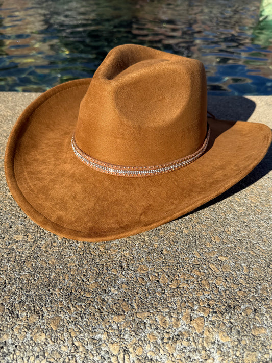 Vegan Suede Cowboy Hat, Hat with Diamond Ruff Accessory, Hat for Burning, Cowboy Hat, Rancher Hat, Hat for customization