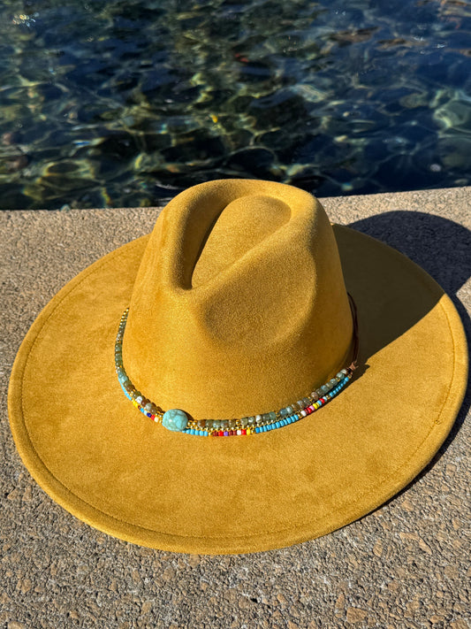 Premium Suede Fedora Hat - gold Design with Decorative Colorful Accents