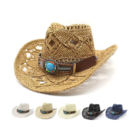 Straw Hat with Cowboy Design and Unique Textured Pattern
