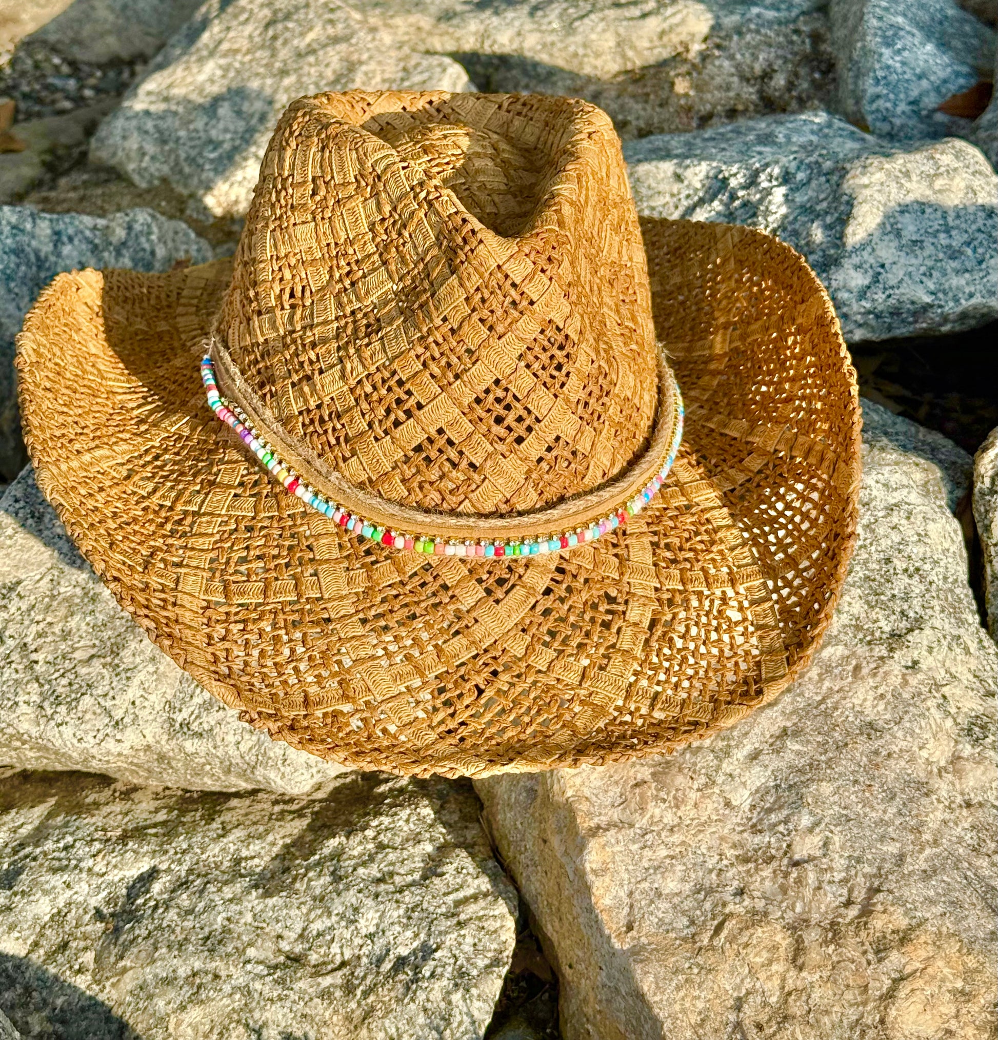 Expertly crafted with a relaxed design, our Straw Cowboy Hat- Shores is perfect for any outdoor occasion. Made with durable straw to withstand the elements, this hat offers both style and protection. Stay cool and comfortable in the sun with this must-have accessory