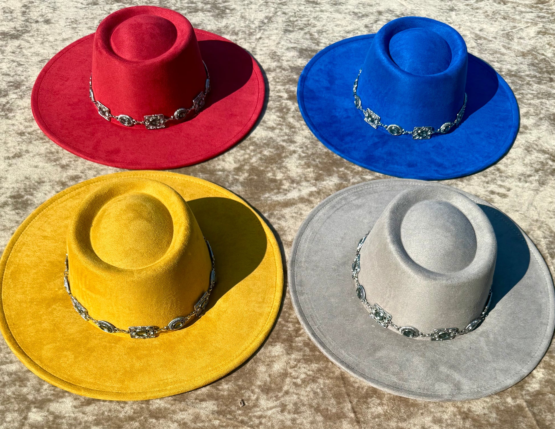 This Hat is a Diamond in the rough! Our Round Boater Brim Diamond Dust Hat will add a touch of sparkle to your style. With a playful brim and unique diamond dust design, this hat is perfect for making a statement. Wear it to the beach, a festival, or just for fun!